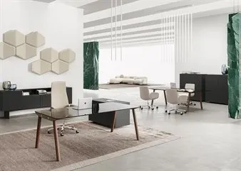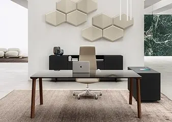 in gres per un ambiente importante; in vetro, per uno stile più leggero e minimale; infine il legno, per un'interpretazione contemporanea dell'ambiente lavoro tradizionale.