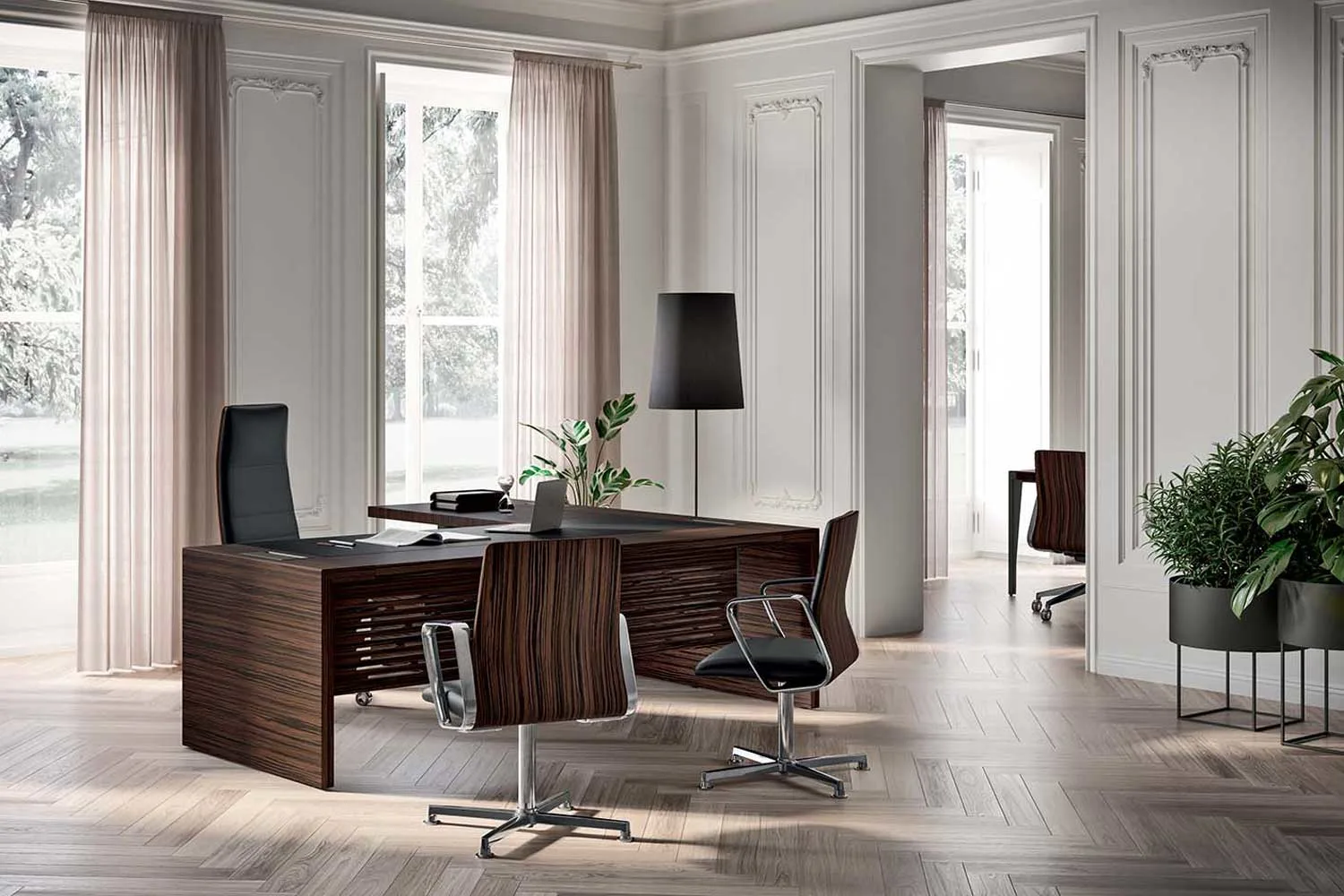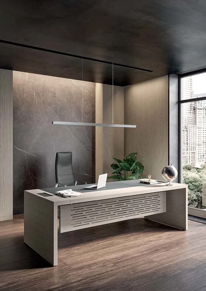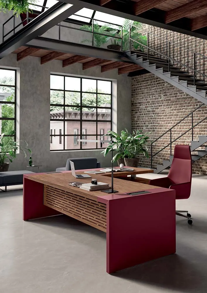 rendono la scrivania pratica da utilizzare, mantenendo un’estetica formale. E-10 è inoltre disponibile nella versione con gonna intagliata, per rispondere ad un gusto internazionale. Disponibile anche nella versione tavolo riunioni con la possibilità di scegliere tra diverse misure e composizioni.