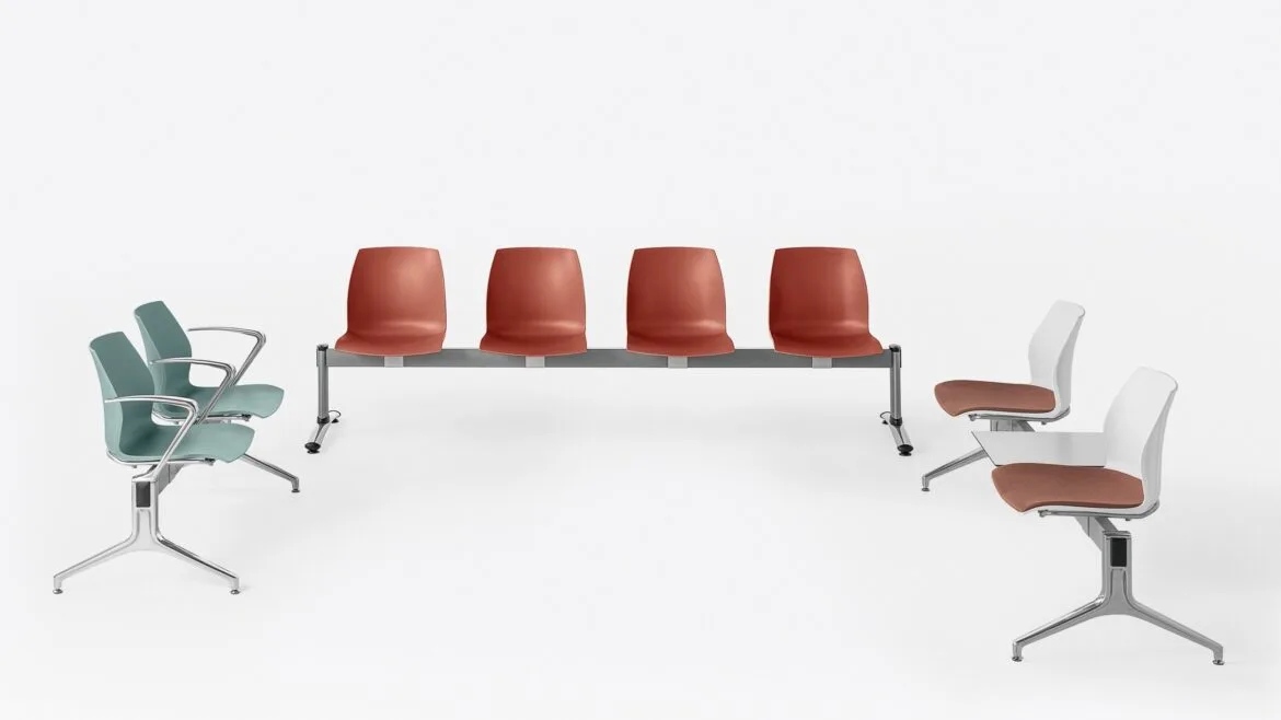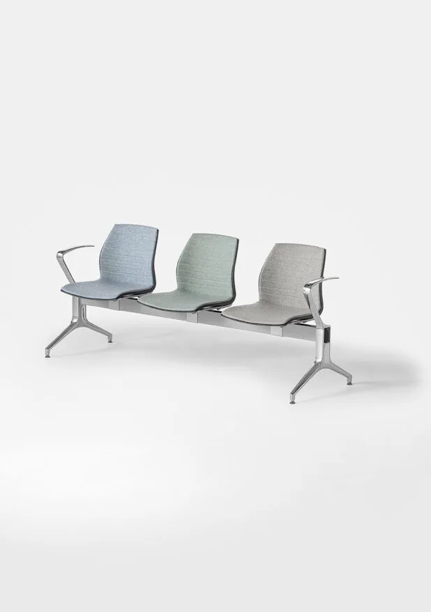 Le sedute su trave per l'attesa Kalea sono caratterizzate da una scocca in polipropilene monocolore o bicolore, con possibilità di avere diverse
