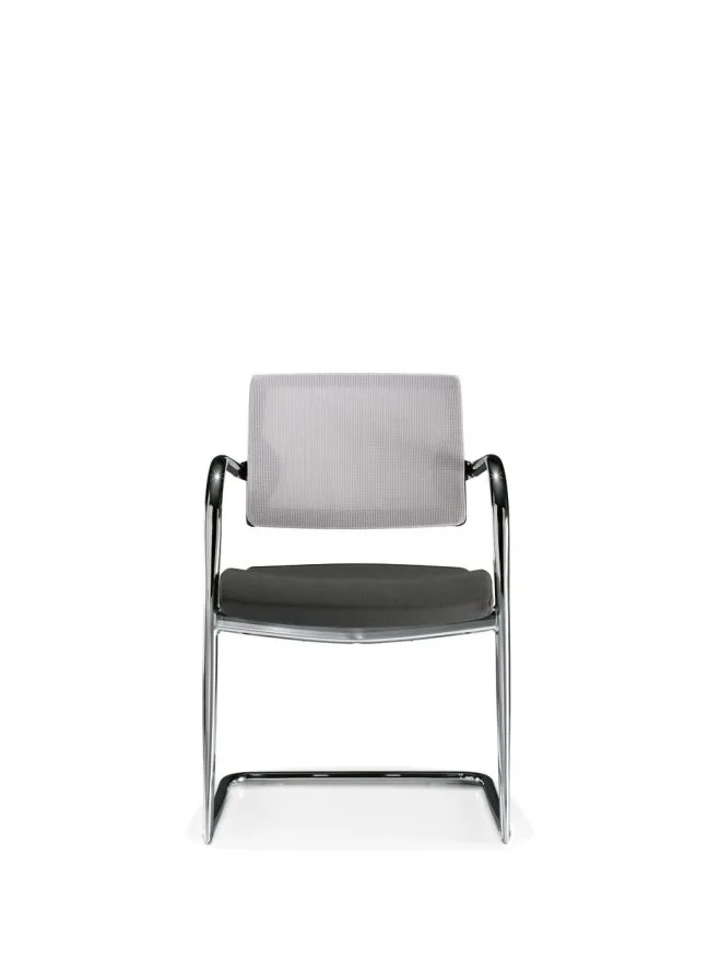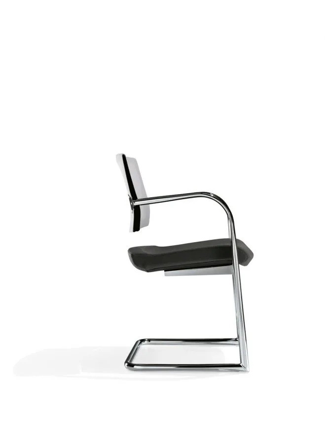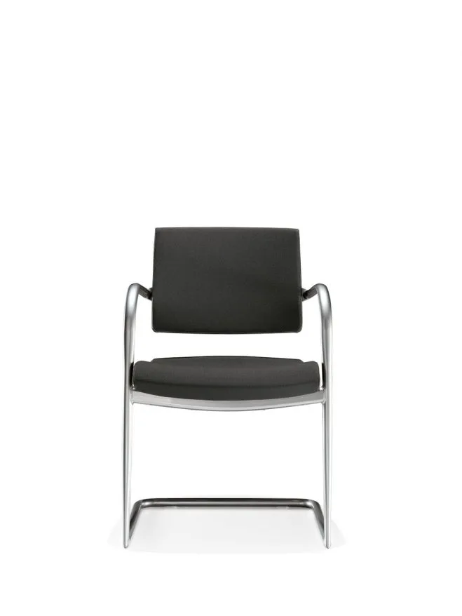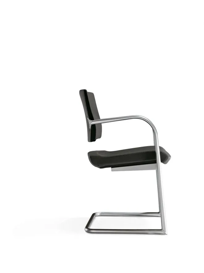 La sedia con telaio a slitta Kelly è disponibile sia nella versione con telaio verniciato che con telaio cromato. Kelly è infine proposta con schienale