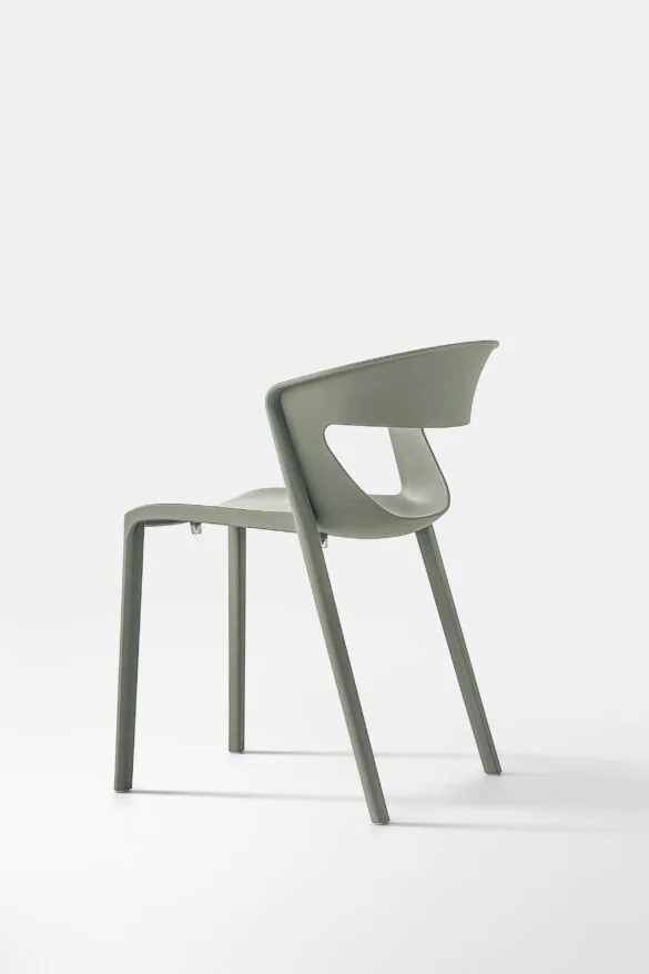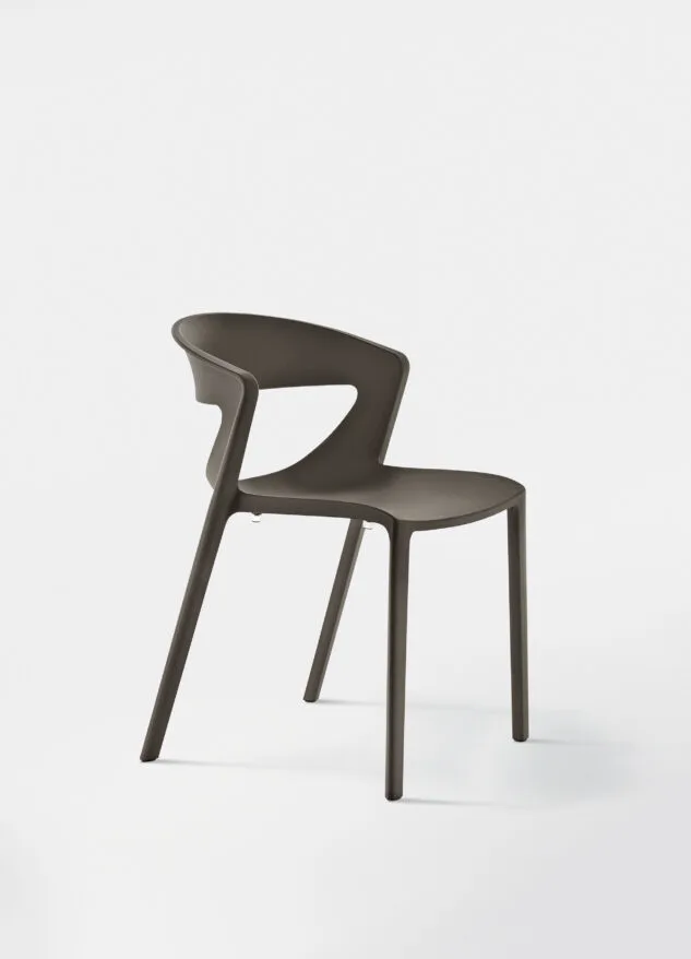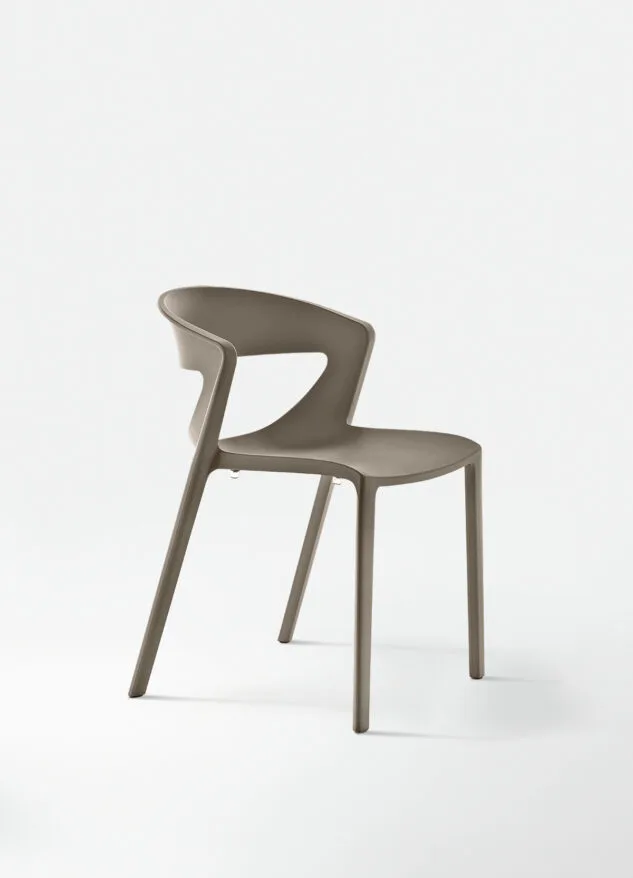 La seduta monoblocco è in polipropilene rinforzato con fibra di vetro e stampata ad iniezione con gas moulding. Kicca One è una sedia impilabile