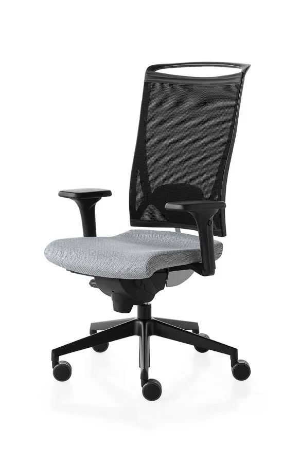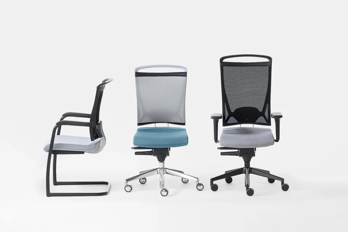 imbottite, propone basamenti in polipropilene o alluminio con ruote piroettanti, oppure in versione fissa con telaio in acciaio. Meccanismi regolabili in acciaio con comandi in tecnopolimero completano una seduta affidabile e versatile per l’ufficio.