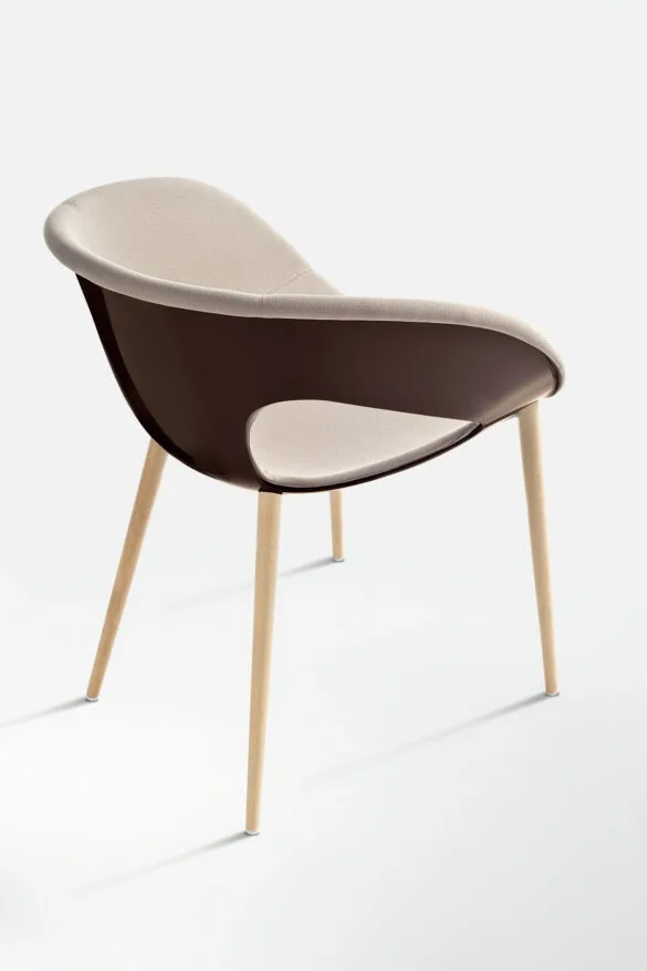 rivestita, in versione con telaio fisso oppure girevole. Ampia e avvolgente. Semplice ed essenziale. Krizia: comfort e modernità.
