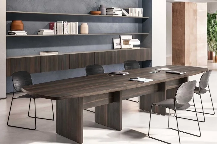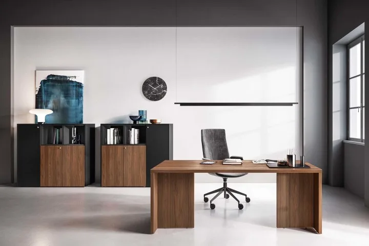 Un progetto versatile e raffinato che prende origine da un’ispirazione minimal-chic e che ha dato vita a un design geometrico e confortevole. Lavorazioni eccellenti e utilizzo di melaminici esclusivi, lo rendono adatto all’ufficio sia per l’operatività singola, sia per la riunione e il contenimento.