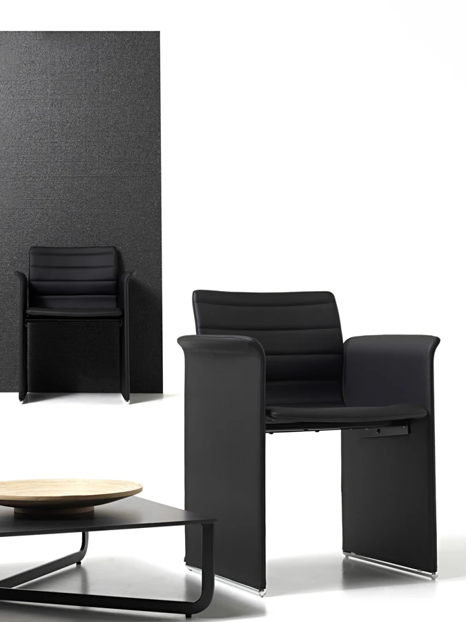 Ne conserva il comfort e l’eleganza ma si libera del superfluo assumendo una forma leggera e minimalista. È l’ideale per sale riunioni e sale d’attesa