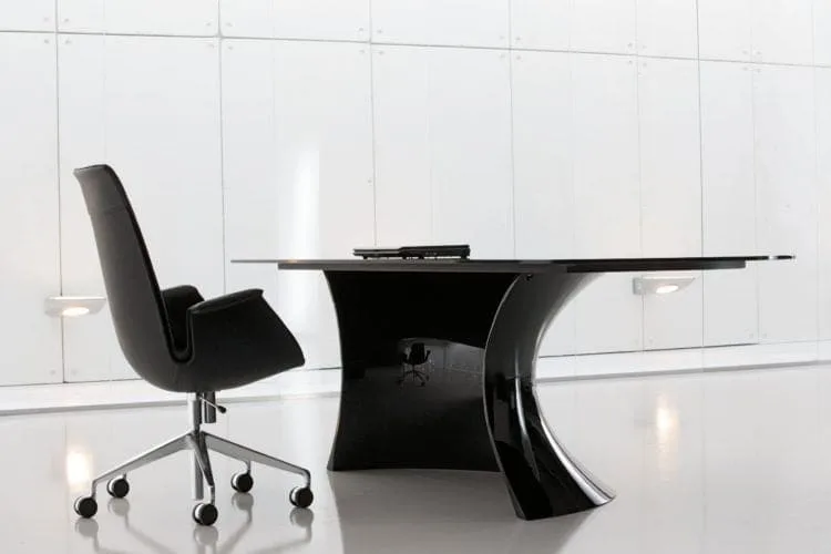 Award 2010 e il Good Design Award 2009. Le scrivanie direzionali di Ola si caratterizzano non solo per la particolare forma della sua base realizzata in Solid surface in finitura bianca o laccata ma anche dalle forme morbide dei piani tonde e ovali, proposti in essenza noce, laccata, pelle o vetro.